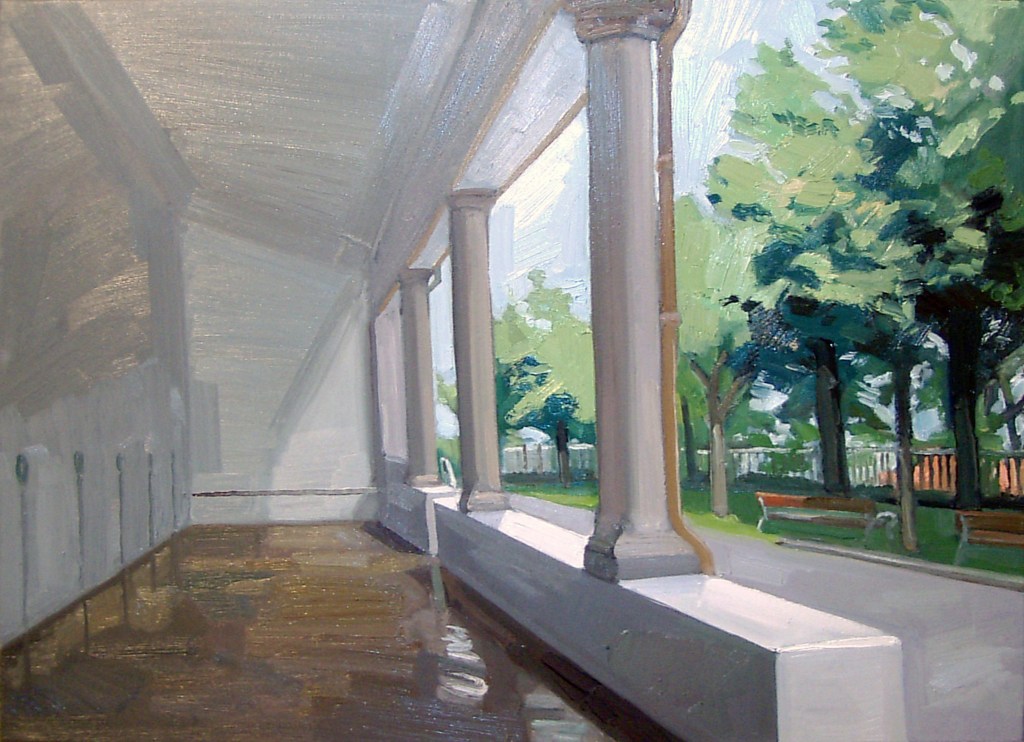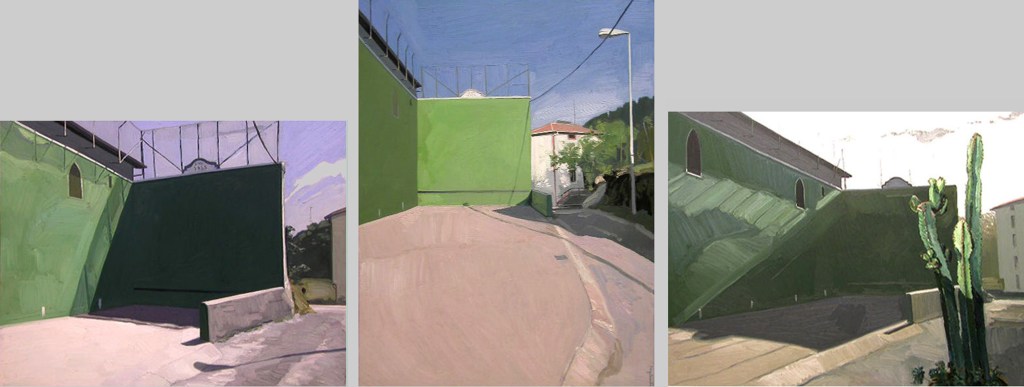 “El pintor estadounidense Edward Hopper decía que su objetivo era pintar la luz del sol en una pared. Era su obsesión, observar cómo se proyectaba y cambiaba su reflejo por el paso del tiempo. Pensé, pues el frontón tiene ¡dos paredes! y, en esas paredes, se producen todo tipo de juegos de luz. Empecé a subir a Arrate, el frontón es maravilloso, y a observar las diferentes tonalidades según la hora del día o de la estación. El frontón de Arrate fue el primero que pinté. Titulé el cuadro Sisley-ren besagaina.
